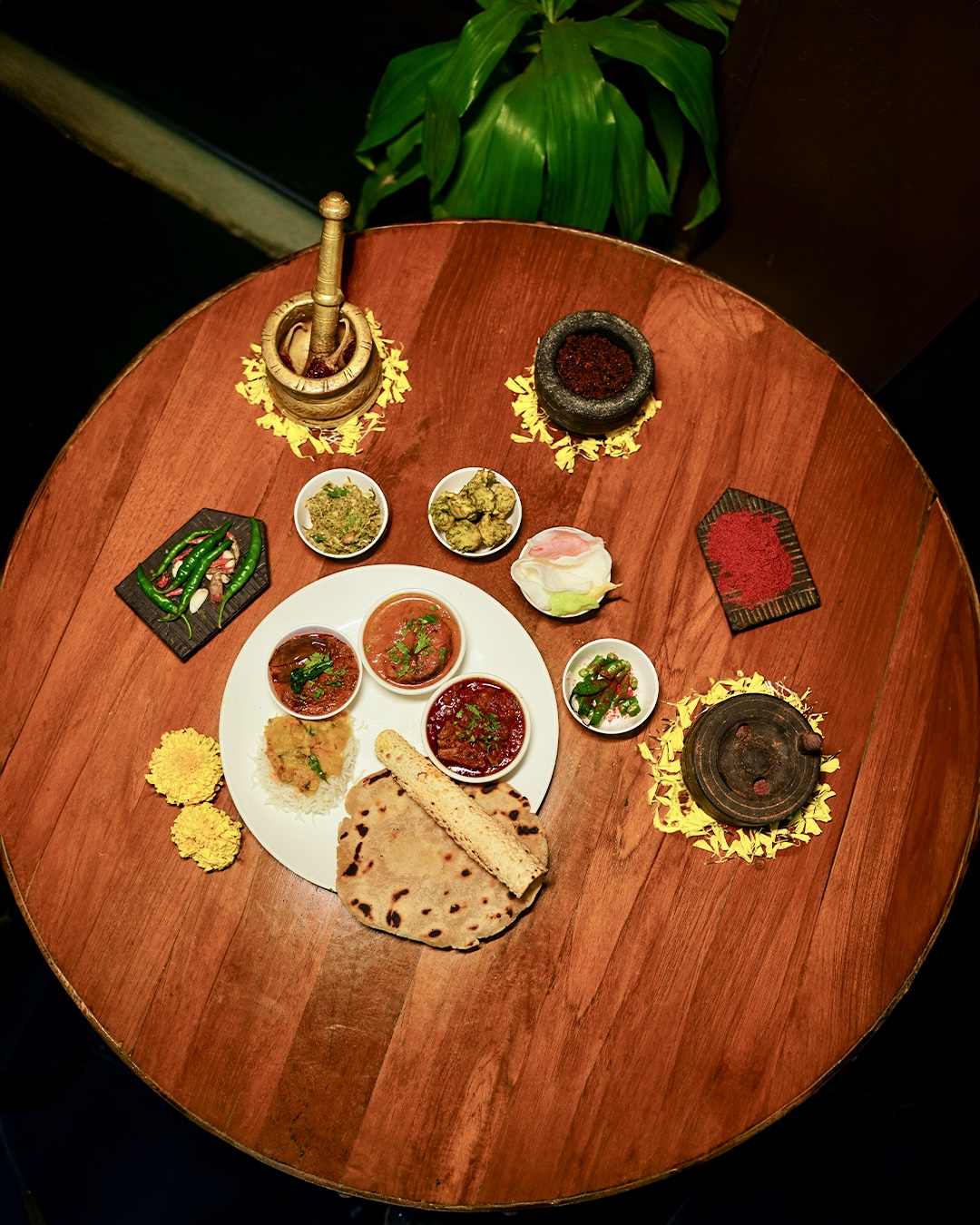 Accompanying these mains are fluffy servings of Indrayani rice and the fragrant, coastal-style prawns pulao. For breads, you’ll be served a selection of jawari, tandlachi, and bajrichi bhakari, along with soft, lace-like neer dosa.
